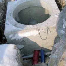 - На прямых участках через 120-140 метров необходима установка смотровых колодцев. Также, колодцы должны устанавливаться при поворотах и в местах ответвления от трассы. В основном используются бетонные смотровые колодцы марок ККС-1 и ККС-2 (существуют также колодцы больших размеров марок ККС-3 и ККС-4).
