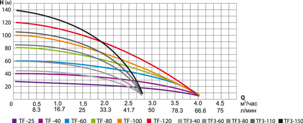 Напорные характеристики TF4 и TF3