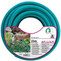 Преимущества: верхний слой стойкий к UV-лучам, двойное NTS* винтовое армирование, позволяющее выдерживать давление до 24 бар, избежать расширения, кручения, узлов, складок, что всегда гарантирует регулярный поток воды.