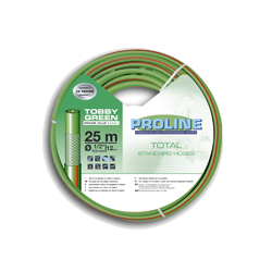 Tobby Green 4-х слойный шланг. Преимущества: 1. Верхний слой стойкий к UV-лучам, 2. Надежное капроновое армирование, позволяющее выдерживать давление до 12 бар. 3. ПВХ не содержит вредных примесей, не токсичен 4. Температура хранения: -15C +60C