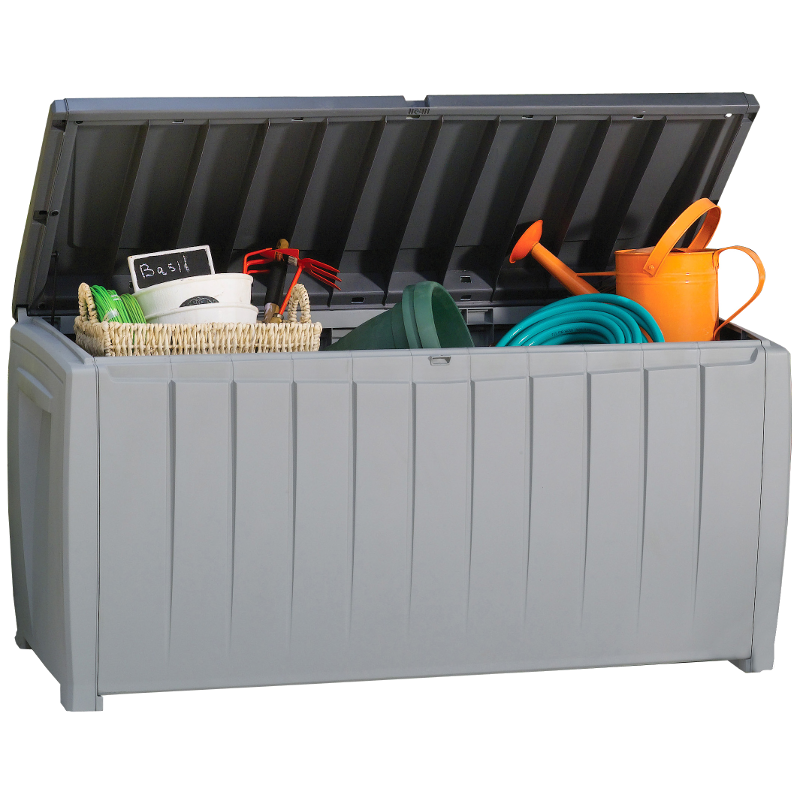 Пластиковые сундуки - это малогабаритные емкости для хранения дров, пледов, подушек, садового инструмента, детских игрушек, различного оборудования, бытовых принадлежностей. Применяются, как правило, в загородном доме, на даче. Садовые ящики могут использоваться на открытом воздухе. На сундуках есть проушины для замка и ручки для переноски. Пластик ящиков не выцветает на солнце. Сундуки всесезонного и всепогодного применения. Все сундуки поставляются в компактном разобранном виде и быстро собираются. Дно сундука выдерживает полезную нагрузку до 50 кг, а закрытая крышка нагрузку сверху до 220 кг.